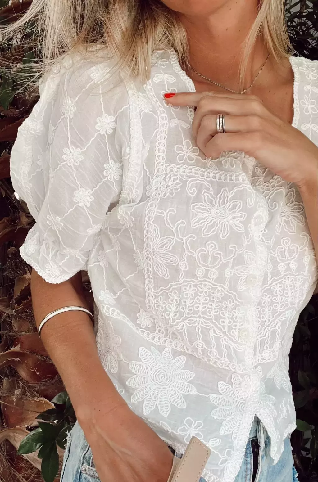 ✨ Blusa tipo camisa bordada – corta y delicada, con detalles que la hacen única.
