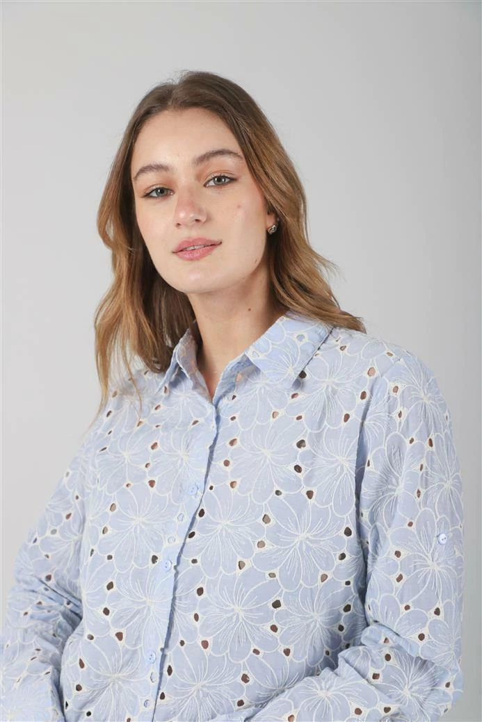 Una prenda delicada y femenina, ideal para realzar cualquier look. Confeccionada en guipiur importado, cuenta con forrería interna que le aporta comodidad y un acabado elegante. Los botones forrados en tela le dan un detalle único y sofisticado.